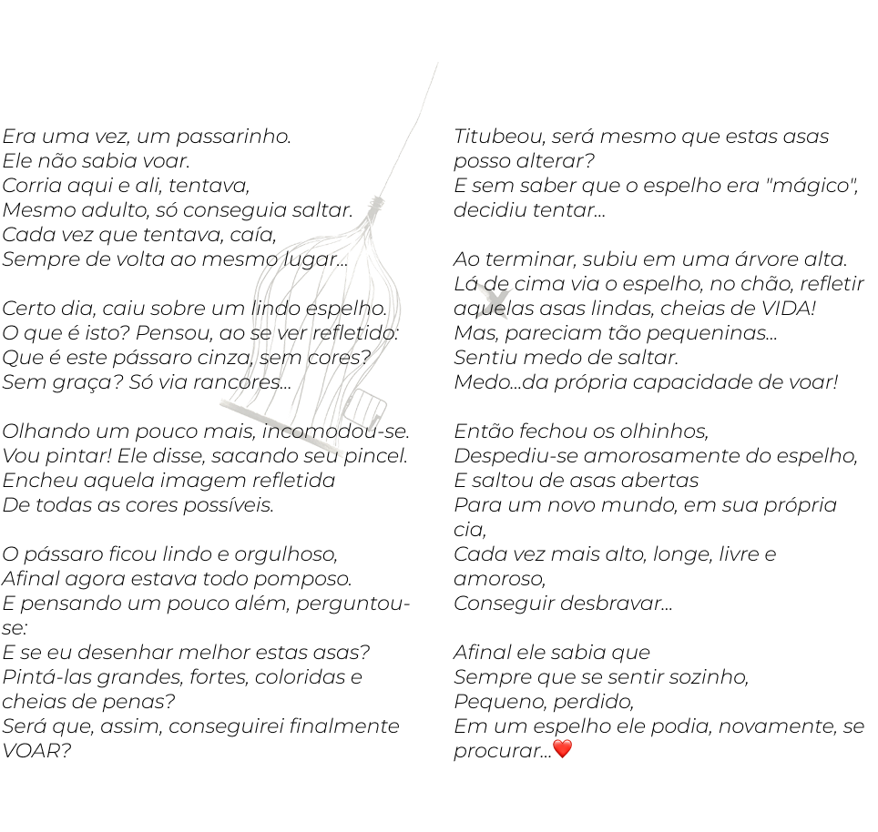 Como ela mesma diz: “estou a disposição na imensa floresta da nossa existência, segurando o espelho para que diante dele Te encontres, de maneira que possas Ver quem És, e Como És!“